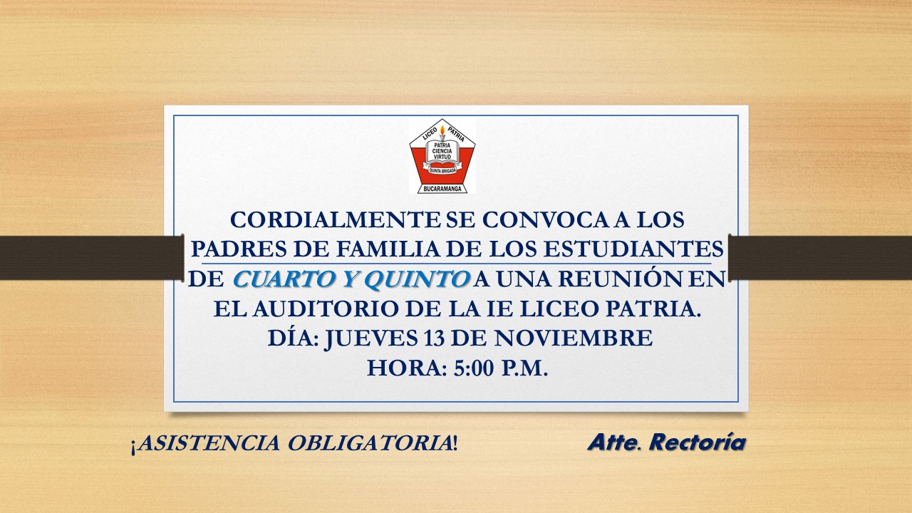 REUNIÓN PADRES DE FAMILIA GRADOS 4° Y 5°