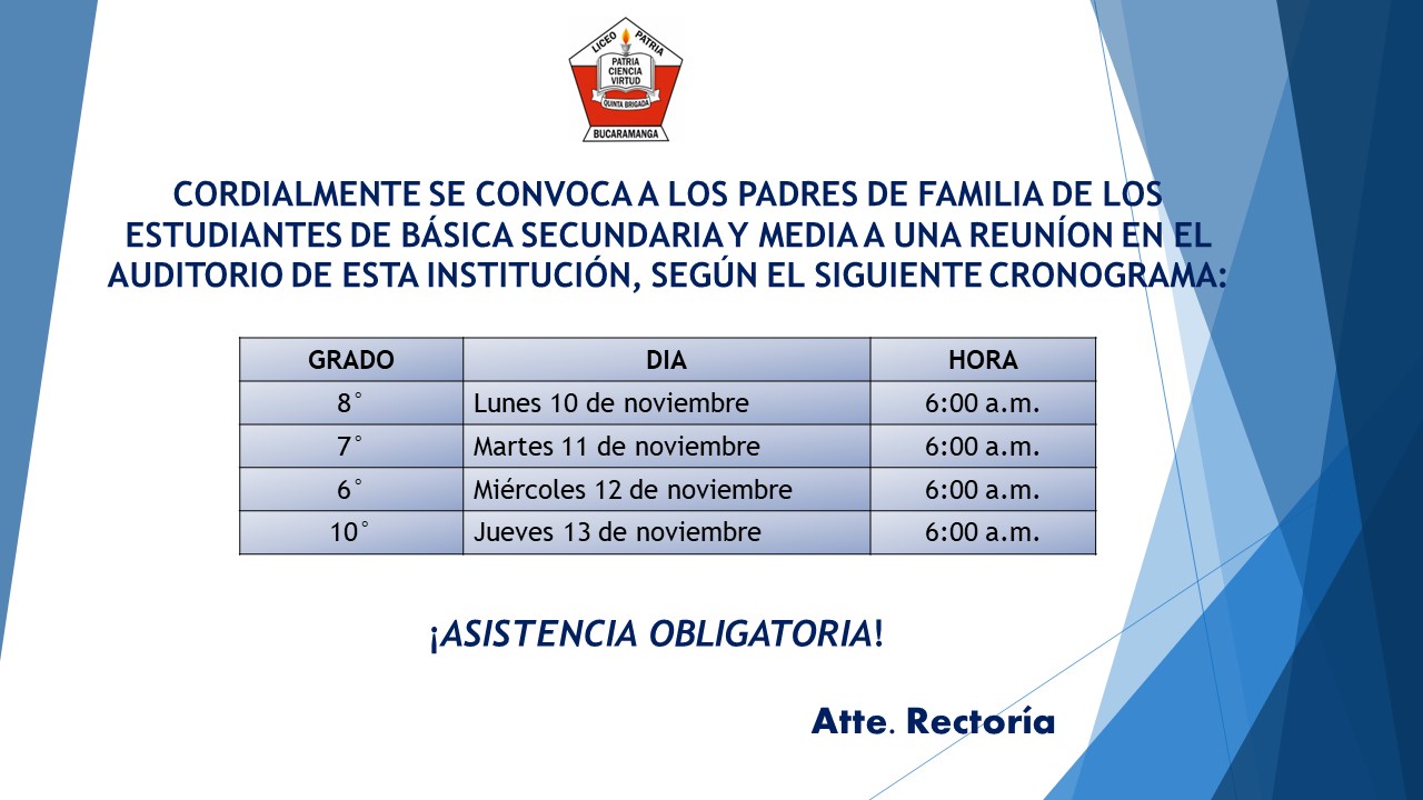 REUNIÓN PADRES DE FAMILIA GRADOS 6° – 7° – 8° Y 10°