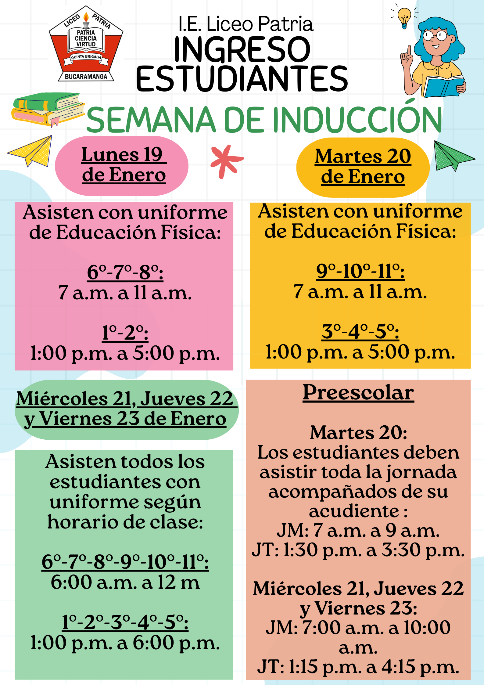 INGRESO DE ESTUDIANTES 2026 – SEMANA DE INDUCCIÓN